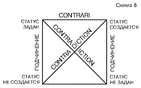 Стр. 54 А) логическая доказуемость правильности выбора оппозиции "заданность – создаваемость" социального статуса. Для подобного доказательства мы предлагаем проделать следующую операцию: абстрагироваться от конкретного социально-психологического содержания указанной оппозиции и сфокусировать внимание на формально-логическую правильность ее выбора. При этом отвлечемся от какого-либо металогического обоснования этой операции и удовлетворимся лишь общим утверждением о том, что при научном оперировании понятиями не только необходимо следовать известным логическим правилам, но и целесообразно на уровне простой рефлексии знать, что эти правила соблюдены. Для доказательства логической правильности выбранной оппозиции хорошим средством является построение т. н. "логического квадрата" (СНОСКА: Идею об использовании "логического квадрата" в данном контексте предложил психолог и логик М. Гелашвили, за что мы ему глубоко благодарны.). Основными отношениями в "логическом квадрате", как известно, являются отношения contrari (контрарность, противность), contradiction (контрадикторность, противоречие) и подчинение. Попытаемся построить "логический квадрат" на основе базовых понятий "заданности" и "создаваемости" социального статуса. То, что "заданность" социального статуса находится в отношении контрарности с его "создаваемостью", не вызывает сомнения. Совершенно очевидно также наличие отношения контрарности между полюсами – "социальный статус не создается" и "социальный статус не задан". Не вызывает сомнения и котрадикторность в парах – "статус задан – статус не задан" и "статус создается – статус не создается". Однако с первого взгляда правомерность представленных здесь отношений подчинения не бросается в глаза. Возникшие сомнения рассеиваются при специальном фокусировании внимания на природе представленных здесь вариантов подчинения. В результате такого специального рассмотрения можно прийти к следующим выводам: 1) состояние – "социальный статус не создается" – может быть в логическом подчинении относительно состояния – "статус задан"; однако статусная заданность не сводится к его простой "не создаваемости": состояние заданности более сложное явление, нежели простое отрицание "создаваемости"; 2) состояние – "социальный статус не задан" – логически включается в более обобщенное состояние "создаваемости" социального статуса. В самом деле, "создаваемость" личностью какого-то нового социального статуса в качестве своего элемента включает в себя отрицание "заданности" какого-то наличного статусного состояния, но сказать это еще недостаточно; следует добавить: для того, чтобы овладеть определенным статусом и "создавать" его посредством определенных усилий, субъект сначала психологически как бы игнорирует "заданность" наличного статусного состояния, внутренне от него освобождается, однако акт такого отрицания лишь первый этап для дальнейших сложных действий по овладению и созданию нового статусного состояния. |