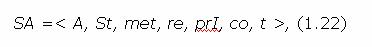 Стр. 211 Кроме того, принципы теории информационных семантических систем не противоречат сформулированным и обоснованным выше (см. раздел 1.3.2.) принципам психолого-педагогического проектирования АОС, а также принципам проектирования АС на "собственном" и "нижестоящем" уровне, сформулированным академиком В.М. Глушковым. Последнее означает, что указанные шесть принципов переработки семантической информации могут служить основой не только для формализованного описания процесса обучения, но также для его анализа и проектирования. В теории информационных семантических систем [93, С.100-107] сформулировано понятие системы с целью (SA) как системы, функционирование которой направлено на достижение определенной цели. Данные системы (SA) формально определяются кортежем вида: где A - цель; St - структура; met - методы; re - средства; prI - обработка информации; co - условия; t - время. Все элементы кортежа являются атрибутами системы с целью. Согласно сущности рассматриваемых систем (SA) между понятиями "система с целью" и "цель" имеется однозначное прямое и обратное соответствие (не существует системы с целью без цели). Данное положение можно представить в виде: