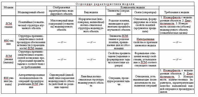 Стр. 308 Смысловая информация, как известно, может рассматриваться с семантических и прагматических позиций. При анализе представленных обучаемым моделей УЭ с семантических позиций, содержащаяся в них смысловая информация рассматривается с точки зрения породивших ее причин, т.е. информация выступает как следствие тех процессов, которые происходят в сознании обучаемого. Таблица 2.1.4 Характеристики модельных форм представления основных компонентов содержания обучения Содержание любой учебной дисциплины всегда представляется обучаемым на основе определенных теорий и методов, принятых в соответствующей научной дисциплине, т.е. это содержание всегда детерминировано. Соответственно детерминированы и эталонные модели УЭ, отображающие истинные (принятые за истинные) представления об изучаемом объекте с той степенью точности, которая определяется целями обучения. Тогда та часть представленной обучаемым модели УЭ, которая объективно совпадает с детерминированной эталонной моделью УЭ, и характеризует качество усвоения данного УЭ обучаемым. Соответственно и оценка количества информации, содержащейся в правильно воспроизведенной обучаемым части эталонной модели УЭ, объективно и адекватно характеризует качество усвоения УЭ с семантических позиций. Таким образом, процедура оценки представленной обучаемым модели УЭ с семантических позиций есть процедура определения количества смысловой информации в правильно воспроизведенной обучаемым части модели УЭ. Количество информации, определяемое с семантических позиций, обозначают термином "семантическая оценка количества информации" или просто, "количество семантической информации". Количество семантической информации, заключенной в эталонной модели УЭ, определяет трудоемкость усвоения данного УЭ и является количественным показателем оценки этой трудоемкости усвоения как меры объективной сложности УЭ. Количество семантической информации, измеренное на представленной обучаемым модели УЭ, полностью характеризует качество усвоения в отношении ЛСМ умения, ЛСМ и ФМ знания, т.е. в отношении тех моделей УЭ, правильность воспроизводства структур которых является единственной целью обучения. В отношении ФМ умения правильность воспроизводства структуры деятельности (эталонной последовательности действий) является не общей, а частной целью обучения. Выше указывалось, что цель усвоения ФМ как алгоритмической процедуры решения определенного класса эквивалентных (родовых) задач предполагает достижение обучаемым нормативного уровня эффективности реализации каждой операции и всей процедуры в целом. Эффективность реализации любой процедуры деятельности оценивается на целом ряде ее характеристик, формирование которых является целью практического обучения. К этим характеристикам относят: правильность (безошибочность), точность, своевременность (быстродействие) и освоенность (напряженность, свободу выполнения). |
