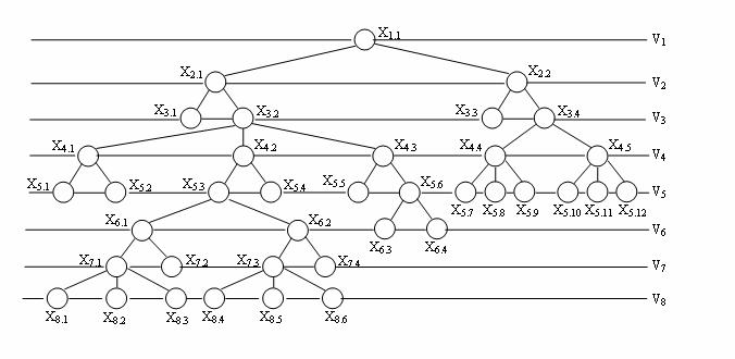 Стр. 355 - поскольку любая часть графовой модели УЭ принципиально может рассматриваться как УО (самостоятельная подмодель), то та часть деятельности обучаемого, которая соответствует эталонной модели, оценивается количеством семантической информации, содержащейся в соответствующей правильно воспроизведенной части эталонной модели УЭ. Оценку трудоемкости реальной учебной деятельности и соответствующие алгоритмы ее расчета покажем на реальной задаче и данных педагогического эксперимента, проведенного в рамках [102]. На рис. 2.2.4 представлена графовая модель способа решения задачи "Удержание кораблем заданной позиции при маневре флагмана". Рассмотрим возможные случаи отклонения учебной деятельности обучаемого от идеальной на примере этой задачи. Проведенный в [102] анализ возможных ошибок обучаемого по формированию любой модели УЭ позволил выявить две основные классификационные совокупности этих ошибок, которые определяют как алгоритмы расчета трудоемкости правильно реализованной учебной деятельности обучаемого, так и алгоритмы, обеспечивающие анализ эффективности его учебной деятельности в целом. Рис. 2.2.4. Графовая модель способа решения родовой задачи "Удержание кораблем заданной позиции при маневре флагмана" Реальная учебная деятельность обучаемого в отношении формируемой им модели УЭ характеризуется двумя принципиальными видами погрешностей: 1. Когда модель УЭ в следствии незнания обучаемым хода дальнейших преобразований над имеемыми семантическими единицами не может быть им представлена в законченном виде. 2. Когда в представленном обучаемым законченном виде модели имеется ряд отклонений (погрешностей, ошибок и т. п.) от эталонного вида данной модели. Эти два вида погрешностей определяют два вида алгоритма расчета семантической информации, реализованной (преобразованной) обучаемым в процессе решения познавательной задачи (Ip), и информации корректуры (Iк) учебной деятельности, которая должна быть выдана обучающим обучаемому по результатам предъявления им УЭ. Логику формирования этих видов алгоритма покажем на примере усвоения (см.таблицу 2.2.3) одним из обучаемых способа решения рассматриваемой родовой задачи (см.рис. 2.2.4). В таблице 2.2.3 приведены количественные характеристики процесса усвоения одним из обучаемых способа решения задачи расчета маневра корабля для сохранения заданной позиции относительно флагмана, фактически имевшие место в процессе педагогического эксперимента [102]. |