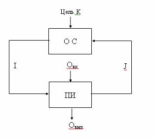 На основе осведомляющей информации J ОС вырабатывает управляющую информацию I, которая путем изменения алгоритмов функционирования ПИ призвана обеспечить достижение цели К. С семантических позиций это информация I аналогично J определяется как где fо - функция преобразования сведений о среде, целях управления и состоянии ПИ в управляющую информацию, формируемую ОС на языке преобразующей информации ПИ. С прагматических позиций необходимая для достижения цели К управляющая информация может быть количественно оценена через квалификационную характеристику ОL ПИ. В соответствии с целями функционирования ОС в случае полного восприятия ПИ управляющей информации и идеальной работе ОС должно выполняться соотношение: |