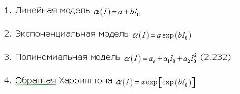 Стр. 426 Для определения вида оптимальной аналитической модели функции обучаемости на основе анализа рядов экспериментальных оценок были выявлены четыре возможных функциональных зависимости: В результате аппроксимации имеемых 226 рядов экспериментальных оценок функции обучаемости данными зависимостями и оценки точности этой аппроксимации были получены обобщенные результаты, представленные в таблице 2.3.4. Таблица 2.3.4. Оценка точности аппроксимации экспериментальных значений функции обучаемости