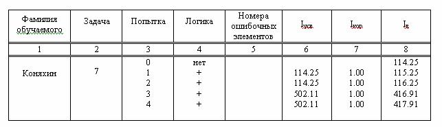 Стр. 432 Совсем иначе обстояло дело у данного обучаемого при усвоении УЭ такой же трудоемкости, но представленного в виде двух УО. Фактически данные учебной деятельности данного обучаемого представлены в таблице 2.3.9. Для объяснения явления резкого изменения характера учебной деятельности обучаемого достаточно оценить вероятность усвоения УО1 и УО2, составляющих изучаемый УЭ. Оценка вероятности выдачи обучаемому информации корректуры, превышающей ее оптимальное значение Iкор = 158 бит: Соответственно оценки вероятности выдачи обучаемому информации меньшей Iкор - 158 бит составляет: Именно эти вероятности и реализовались в процессе учебной деятельности рассматриваемого обучаемого. Анализ данных эксперимента позволил сделать вывод, что погрешности самой имитационной модели можно учесть в (2.236) и представить формулировку закона управления обучением в установившемся режиме в виде где s - среднее квадратическое отклонение полиномиальной модели функции обучаемости. Необходимо отметить, что применение дидактической стратегии представления УЭ в виде совокупности УО повышает эффективность обучения только в том случае, если трудоемкость УЭ превышает его оценку, полученную при решении 2.244. Покажем это на примере обучаемого, чья модель функции обучаемости имеет следующие параметры: a0= 0.979553, a1=0.00079, a2=-0.000001, s2=0,000, "потолок" усвоения Imax = 1594.37 бит. Таблица 2.3.9. Типичные эмпирические данные процесса усвоения УЭ в экспериментальной группе Решая (2.244) для данного обучаемого, имеем Iкор = 389.5 бит, Iуо = 1201.87 бит с первого предъявления. Это утверждение подтверждают данные эксперимента: в процессе усвоения всех шести УЭ у данного обучаемого только один раз возникала потребность в корректуре его учебной деятельности. Оценивая эффективность обучения такого обучаемого, имеем: - в условиях экспериментальной группы Ко = Кос = 0.3047; - в условиях контрольной группы Ко = Кос = 0.3333. В точке Iэт = 502.11 функция обучаемости данного обучаемого имеет значение a=1.0, что гарантирует полное усвоение УЭ с первого предъявления, снижение эффективности обучения определяется только неправильным выбором стратегии обучения. При этом, чем на большее число УО будет разделен УЭ, тем менее эффективным будет обучение такого обучаемого. По результатам проведенного эксперимента можно сделать следующие выводы [102]: |