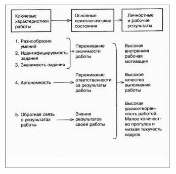 Стр. 46 Если люди чувствуют, что они находятся под давлением или контролем соревнования, — тогда и соревнование воспринимается как ограничение их автономности. «Предоставление выбора, в широком смысле этого слова, является основополагающим в поддержке автономности личности. Поэтому важно, чтобы люди, занимающие управляющие позиции, начали размышлять над тем, как предоставить больше выбора» (Deci E., 1995, р. 34). В связи с концепцией внутренней мотивации полезно обсудить проблему общего мотивирующего потенциала работы (Hackman J., Oldham G.,1977; 1980). Концепция Хакмана и Олдхема определяет оптимальные направления «реорганизации труда», «обогащения труда», или «расширения труда». Ими была сформулирована модель рабочей мотивации, основанная на ключевых характеристиках работы: Определения ключевых характеристик работы. 1. Разнообразие умений — та степень, в которой работа требует разнообразных видов активности, подразумевающих использование ряда различных умений и способностей личности. Хакман и Олдхем считают, что разнообразие умений, которое необходимо для решения игровых задач, является основной причиной привлекательности их для человека; если работа требует от человека разнообразных умений, она будет казаться ему гораздо более значимой, чем это есть на самом деле. 2. Идентифицируемость задания — степень, в которой работа требует завершения целостной и определенной задачи или этапа работы от начала и до конца с видимым результатом. 3. Значимость задания — степень, в которой задание имеет существенное влияние на жизнь или работу других людей как в данной организации, так и во внешнем окружении. Пример: подкручивание болтов у уже готового самолета — задание высокой значимости. 4. Автономность — та степень, в которой работа предоставляет реальную свободу, независимость и возможность действовать по своему усмотрению в планировании работы и в определении способов ее выполнения. 5. Обратная связь — та степень, в которой выполнение рабочих заданий сопровождается получением прямой и ясной информации относительности эффективности работы. |