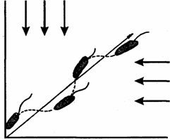Стр. 171 «Глазки» описаны и у других жгутиковых. Например, массивный ярко-красный глазок имеет Collodictyon sparsevacuolata – своеобразный протист с 2–4 жгутиками и амебоидным обликом, способный быстро передвигаться как с помощью жгутиков, так и с помощью ложноножек. Особую сложность фоторецепция достигает у жгутикового Pauchetia (Dinoflagellata), у которого имеются уже аналоги существенных частей глаза многоклеточных животных, пигментное пятно снабжено не только светонепроницаемым экраном (аналог пигментной оболочки), но и светопроницаемым образованием в форме сферической линзы (аналог хрусталика). Такой «глазок» позволяет не только локализовать световые лучи, но и собирать, в известной степени фокусировать их. Рис. 28. Траектория передвижения эвглены под воздействием двух одинаково интенсивных источников света (по Будеру). Пластичность поведения простейшихКак мы видим, и в моторной и в сенсорной сфере поведение достигает у ряда видов простейших известной сложности. Достаточно указать на фобическую реакцию (реакцию испуга) туфельки в вышеописанном примере клинотаксиса: наткнувшись на твердое препятствие (или попав в иную неблагоприятную зону), туфелька резко останавливается и принимает «оборонительное положение», т.е. «съеживается», готовясь пустить в ход ядовитые стрекательные капсулы. Одновременно меняются движения ресничек, происходит тактильное и химическое обследование объекта и т.д. У эвглены фобическая реакция выражается в том, что она, остановившись, начинает производить передним концом тела круговые движения, после чего уплывает в другом направлении (рис. 29). Ясно, что такая интеграция моторно-сенсорной активности возможна лишь с помощью специальных функциональных структур, аналогичных нервной системе многоклеточных животных. Однако о морфологии этих аналогов еще очень мало известно, и только относительно инфузории удалось с определенной достоверностью доказать существование специальной сетевидной системы проводящих путей, располагающейся в эктоплазме. Очевидно, проведение импульсов осуществляется у простейших и системой градиентов в самой цитоплазме.