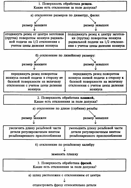Стр. 96 Обучающийся соответствующими измерительными инструментами (а ими он учится пользоваться тут же, в процессе производства измерений, но по другой схеме ООД, которая здесь не приведена) измеряет деталь (в данном случае винт) и при обнаружении отклонений сразу же производит необходимую подналадку автомата, то есть делает то, что рекомендует схема ООД («увеличить длину...», «отцентровать фрезу...» и т.д.). Как из первого, так и из второго примеров видно, как движется обучающийся в освоении деятельности: сначала читает задачу, а затем обращается к схеме ООД и, получив нужную ориентировку, действует. Так шаг за шагом он учится деятельности. Фрагмент схемы ООД «Наладка токарного автомата» Схема 6. Опыт показывает, что решения нескольких десятков задач вполне достаточно, чтобы уверенно совершать все профессиональные действия, какими бы они ни были — мыслительными, физическими или перцептивными (сенсорными). Как можно было заметить из анализа примеров, обучаемым постоянно приходится иметь дело с двумя типами методических материалов — с задачами и схемами ООД, ибо без них нельзя обойтись, по крайней мере в начальный период обучения. Однако со временем, по мере непроизвольного запоминания порядка и правил действий (особенно после 10—15 повторений действий в разных вариантах задач), обучающиеся добровольно отказываются от одного из этих средств, а именно — от схемы ООД, ибо нужда в ней отпадает. Это означает, что раз уже человек запомнил порядок действий и теперь действует «наизусть», то он овладел действиями, т.е. всей деятельностью. А что касается «Оперативной схемы выполнения действиями», то ею пользуются только при решении самых первых двух-трех задач, а затем уже в ее «услугах» не нуждаются, потому что общий порядок поиска решения в принципе всех возможных задач сразу легко запоминается. Да и сама объективная логика задачи диктует необходимость немедленного обращения к схеме ООД, а с ее помощью уже можно решать, как убеждается обучаемый, любую задачу, не обращаясь больше ни к каким другим методическим средствам. |