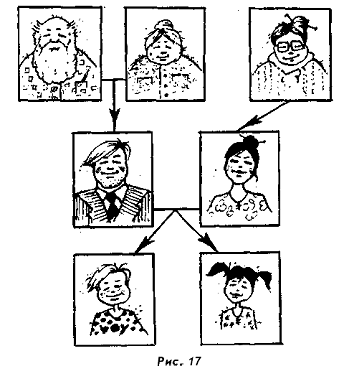 15. Составить рассказ о своей семье, используя понятия: старше, младше, сестра, брат, внук, внучка, сын, дочка и др. 16. Запомнить данную ниже схему состава семьи (рис. 17). 17. Составте схему состава собственной семьи. Объяснить устно, кем ты приходишься каждому члену семьи. 18. Объяснить СМЫСЛ ПОСЛОВИЦЫ.' «Ноябрь - сентябрю внук, октябрю - сын, зиме - родной батюшка». Начертить схему, отражающую эти отношения. 19. Установить последовательность событий, изображенных в сериях сюжетных картинок (подбираются логопедом в соответствии с возможностями детей). Образец — см. серию рис. 18. 20. Наблюдение последовательности каких-либо явлений и реальных действий, описание этих явлений или воспроизведение действий. 21. Исправить замеченную ошибку в перечне дней недели, летних месяцев и т.п. рядах, диктуемых логопедом с намеренной перестановкой либо пропуском. (Материал подбирается логопедом.)  |