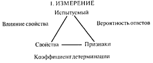 Стр. 204 1. появление признака строго детерминированно и соответственно детерминирован тип ответа; 2. взаимодействие испытуемого и задания определяет вероятность получения того или иного ответа. Чаще применяется вероятностная модель. Множество свойств имеет определенную структуру. Традиционно полагается, что тестируемые свойства должны быть линейно независимы, хотя в общем случае это условие необязательно. Каждое свойство имеет определенную топологию: она может быть не определена, а свойство — точечно, линейно, многомерно. 1. Тест измеряет свойства некоторых объектов, принадлежащих определенному множеству 0-совокупности потенциальных испытуемых. В руководстве к тесту оговариваются характеристики множества испытуемых, для которых он предназначен. Тем самым определено некоторое множество О с отношениями между его элементами. Эти отношения связаны с топологией свойства. Если топология свойства не определена, то на множестве испытуемых можно вводить только отношения сходства, не соответствующего правилу транзитивности отношений. Если свойство является точечным, то, согласно его определению, оно позволяет отделить испытуемых, обладающих свойством, от испытуемых, им не обладающих. То есть на множестве испытуемых можно ввести отношения эквивалентности — неэквивалентности, свидетельствующие о степени обладания свойством. Наконец, если свойстволинейное, то испытуемых можно расположить на линейном континууме и ввести метрику. 2. Тест включает в себя множество заданий (Z) и вариантов ответов испытуемого (R), которые оговорены в предлагаемой ему инструкции (решил — не решил, да — нет, хорошо — средне — плохо и т.д.). Декартово произведение Zx R = J дает нам множество индикаторов (признаков) измеряемого свойства. Индикаторы могут быть относительно свойства разнородны, однородны (т.е. на них могут быть введены отношения эквивалентности), шкалированы (область разной "силы"). |