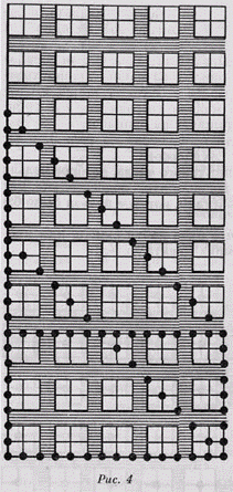 Я пишу эти числа на доске, по мере того как мне их называют; первую цифру слева первого числа — на первом квадрате слева первого ряда; вторую цифру слева первого числа — на втором квадрате слева того же ряда и так далее Второе число я размещаю во втором ряду квадратов, единицы под единицами, десятки под десятками и так далее Третье число я размещаю в третьем ряду квадратов и так далее, как изображено на рис. 3. Затем, пробегая пальцами каждый вертикальный ряд снизу вверх, начиная с самого правого, я складываю находящиеся здесь числа; |