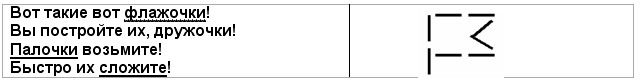 Вы рисуете образец флажка на доске. Дети строят флажок из палочек. Дети пяти лет могут строить его по памяти.