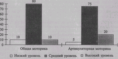 Стр. 161 3) согласование двигательного акта с внешним пространством при ведущей роли зрительной афферентации (уровень С). Рис. 6. Выполнение теста на динамическую координацию здоровыми детьми (в %): по оси абсцисс — вид моторики; по оси ординат — количество детей (в %) Результаты оценки представлены в таблице 11. Выявленное преобладание нарушений элементарных движений позволяет говорить о недостаточной сформированности у детей с речевыми расстройствами двигательного анализатора в целом. Рассогласование степени владения различными двигательными навыками (общей, мимической, ручной, артикуляторной моторики) позволяет говорить о сложном и неоднозначном характере их взаимодействия. Развитые психомоторные навыки являются одним из важнейших условий, обеспечивающих полноценную коммуникацию, в том числе с участием речи. Качественный анализ полученных данных свидетельствует о том, что у детей с речевыми нарушениями движения и мимика менее выразительны, чем у здоровых. Поэтому развитие этих навыков — одна из ведущих коррекционных задач. Большинство специалистов относит заикание к специфическим дискинезиям центрального происхождения (Шостак Б. И., 1967; МерлисМ.И., 1970; Рилей Г., Рилей Д., 1980; Рычкова Н.А., 1981, 1984; ВолковаГ.А., 1994; Аристов В. М., 1985; БеляковаЛ.И., Кумалья И., 1985; и др.). При этом прямо или косвенно предполагается, что имеется определенная зависимость степени заикания от состояния двигательной сферы в целом. Именно на таком предположении основано широкое применение при лечении заикания логопедической ритмики (Самойленко Н.С., 1939; Гринер В.А., 1958; Матейова 3., Машура С., 1984; Оганесян Е.В., 1981; Рычкова Н.А., 1984; Волкова Г.А., 1985). Единого мнения о конкретных механизмах взаимодействия моторного анализатора и речи до сих пор не существует. Так, например, Э. Фрешельс рассматривал заикание как некоторую универсальную форму нарушений движений, которая может проявляться не только в устной речи, но также «при письме, игре на рояле, на скрипке и трубе» (1931. — С- 101). Некоторые исследователи сохраняют приверженность теории С.Ортона и Л.Травис, согласно которой заикание — это результат нарушений функциональной асимметрии мозга, как следствие двухстороннего представительства речевых функций в мозге (Моор, Хайнс, 1980; Маркс, 1982; Ефимов О. И., Корвякова Н.Ф., 1986). Некоторые авторы конкретизируют связь речи с общей моторикой, считая, что речь страдает прежде всего как наиболее тонкокоординированный двигательный акт (АнгушевГ. И., 1974; Рилей Г., Рилей Д., 1980). |