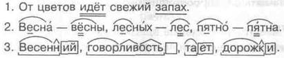 Первые цветы.* Ранняя весна пришла в нашу местность. На открыты лесных полянах весеннее солнце съело остатки снега. А на дне оврагов ещё можно увидеть тёплое белое пятно. Воз дух потеплел. Пробудилась земля. Она подарила людям чудесные весенние цветы. Лесные полянки украшает голубой ковёр подснежников. Прекрасны эти первые цветы русских лесов. Ребятишки из окрестных деревень несут из леса скромные букетики. От цветов идёт свежий запах. Подснежник очень похожи на радостную улыбку весны. Задания 1. В предпоследнем предложении подчеркнуть подлежащее и сказуемое. 2. Выписать 3 слова с безударной гласной в корне, по добрать проверочные слова. 3. Разобрать слова по составу. Весенний, говорливость, тает, дорожки. Ответы |