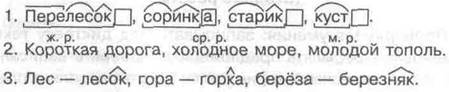 Стр. 20 2. Лёгкий (туман) — густой. Весной. Над водой проносились стаи перелётных птиц. Они радостно встречали весну. Но много бед жителям леса несёт вода. Тёплые ручьи растопили снег. Вода хлынула в жилища. Жить там стало опасно. Выбежала из норки мышка. Она прыгнула на куст и замерла. Трудно и зайцу. Он жил на островке среди речки. Кругом холодная вода. Не переплыть бедняжке это море. Надо ждать. Задания 1. Разобрать слова по составу. Перелесок, соринка, старик, куст. 2. К именам существительным подобрать подходящие по смыслу имена прилагательные. Определить их род. ...дорога, ... море, ... тополь. 3. От приведённых ниже слов образовать 2—3 однокоренных слова при помощи суффикса. Лес, гора, берёза. Ответы |