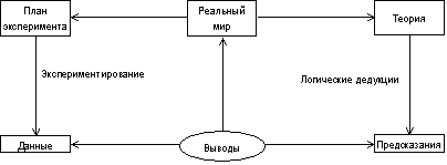 Стр. 6 Согласно дедуктивному методу, гипотеза, напротив, есть, в первую очередь, общее утверждение, которое затем подвергается эмпирической проверке. Сначала исследователь формулирует более или менее специфические постулаты и гипотезы, а затем собирает данные с целью проверки этих гипотез. Оба метода дополняют друг друга, пересекаются и используются взаимосвязанно. Отношение между теорией и экспериментом является очень тесным. Эксперименты проводятся для познания действительности и выработки теорий. Данная схема взята из работы Макбарнеу (McBurney) «Методология исследования в психологии» Mulino, Италия, 1983. Схема 1 На схеме из блока «реальный мир расходятся две стрелки. Стрелка, направленная вправо, обозначает процесс разработки некой теории. Затем при помощи логического дедуктивного метода делаются предсказания. Стрелка, исходящая из блока «реальный мир» и направленная влево, обозначает проведение эксперимента. Результатом эксперимента является получение эмпирических данных. Последним этапом является сравнение результатов эксперимента и предсказаний теории. Если между ними есть соответствие, то можно сказать, что теория подтверждена. В противоположном случае теория признается недействительной. Если теория подтверждается, другие теоретические предположения могут быть проверены в другом эксперименте. Теория может быть разработана для того, чтобы сделать предсказания, которые также могут быть проверены. Если же теория не подтверждается, существуют две возможности: 1) теория может быть модифицирована для объяснения новых данных; 2)эксперимент может быть изменен для более тщательной проверки теории. В любом случае после того, как на основе результатов эксперимента сделаны выводы, необходимо вернуться к блоку «реальный мир» и решить, что нужно модифицировать – теорию, экспериментальный метод или и то и другое. Поэтому стрелка, которая ведет от блока «выводы» к блоку «реальный мир», обозначает, что наука есть непрерывный процесс. На самом деле крайне редко отдельный эксперимент позволяет ответить на все вопросы, поставленные научной проблемой. Ученые непрерывно формулируют теории, объясняющие явления реального мира, и постоянно проводят эксперименты для того, чтобы проверить эти теории. |