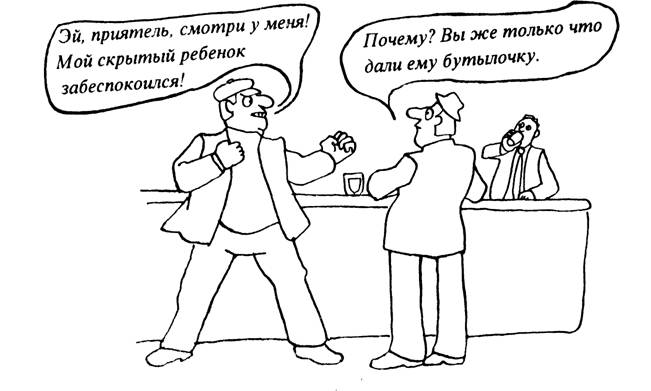 Стр. 107 Джон. Значит, у кого-то внутри здоровенный ребенок, а у когото — незаметненький кроха? Робин. Скажем так: чей-то скрытый внутри ребенок расстроен больше других. Джон. А крутые парни? Неужели и в них по ребеночку? Робин. Я со всякими встречался — у всех. Джон. Значит, даже если "ребенок внутри" спокойненький, в случае стресса он еще как раскричится? Робин. Да. И очень полезно разобраться, что там за "крутостью" у этих парней. Если речь о так называемых "настоящих мужчи-нах", то они пытаются внушить всем своим видом, что никакого младенца в себе знать не знают. И поэтому никогда о нем не заботились. Поэтому другим от них тоже ничего не получить, это настоящие злыдни. Они противостоят стрессу, сколько могут, а потом неожиданно валятся. Истинно крепкие люди признают ребенка в себе и умеют за ним присмотреть. Это такие люди могли вынести все муки в гестапо и еще поддерживали товарищей. Джон. Кстати, техника допроса на том, наверное, и строится, чтобы растревожить "ребенка внутри"? Нагнетают напряжение, отнимают всякую возможность обрести эмоциональную опору. Робин. Заключенных намеренно лишают чувства времени, оставляют с завязанными глазами, пытают шумовым воздействием—отрезают от внешнего мира, отнимают даже этого рода опору. Джон. Выражение "смотреть за собой" много говорит правда? Крепкий человек—это тот, который способен "смотреть за собой". За нами смотрят матери. Значит, крепость и независимость обретается вместе со способностью стать самому себе матерью. Робин. Верно. Дать себе все, в чем нуждаетесь. Человек, неизменно способный к этому, будет сильным и независимым. Джон. Его "ребенок внутри" всегда доволен. Но давайте вернемся к "нашей" матери и ее ребенку. Точнее—к двум: одному ребенку, рожденному ею, другому—которого она постоянно держит в себе. Вероятно, она должна смотреть за обоими? |