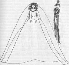 Стр. 27 Скрывание генитальной зоныЭто можно наблюдать в рисунках человека девочек-подростков. Фигура девушки изображена с руками, стыдливо прикрывающими нижнюю часть туловища, в то время как руки мужской фигуры смело раскрыты. Одна девочка нарисовала невесту с букетом цветов в центре тела. Некоторые располагают какие-то предметы на уровне живота. Девочка нарисовала всю свою семью, члены которой были заняты какими-то делами, но она сама при этом была изображена лежащей неподвижно в кровати, а ее нижняя часть тела была накрыта одеялом. Эти факторы, по-видимому, являются выражением скромности и целомудрия, если не связаны с поведенческими расстройствами. Сокрытие рук в детских рисунках рассматривается как выражение чувства вины из-за мастурбации. Рисунок 31 Рисунок 32 Рисунки 31—33 выполнены девочкой 8,5 лет с нормальным интеллектом. Выражают ее интерес к воспроизводству (кошка и котята), к браку (руки невесты скромно сложены). Обратите внимание на то, что на рисунке семьи руки самой девочки скрещены спереди, на животе. Рисунок 33 |