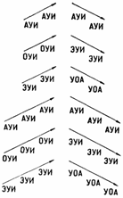 Гласные легко, свободно «подбрасываются» вверх, при этом диапазон голоса повышается и понижается в пределах двух тонов. Голос звучит радостно, весело.