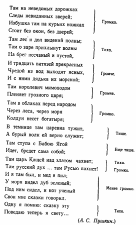 Стр. 98 — ослабление звучания 10) Чтение стихотворений с постепенной сменой силы голоса. Унылая пора! Очей очарованье! — одна артикуляция Приятна мне твоя прощальная краса. — шепот Люблю я пышное природы увяданье, — тихо В багрец и в золото одетые леса, — громче В их сенях ветра шум и свежее дыханье,— громко И мглой волнистою покрыты небеса, — тихо И редкий солнца луч, и первые морозы, — шепот И отдаленные седой зимы угрозы. — одна артикуляция (А. С. Пушкин.) |