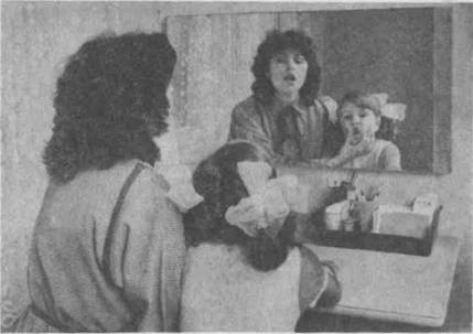 Стр. 56 Рис. 25. Постановка звука ш При постановке звука ш логопед предлагает логопату произносить длительно смягченный ш (шьшь) или слог ась и в это время, так же как при постановке звука ч, поднимает шпателем или зондом кончик его языка к верхним альвеолам, отчего получается шьшь или звук ш. Вначале этот звук закрепляют в прямых, слогах, затем в обратных, далее в словах и фразах. Кроме того, проводятся устные и письменные упражнения на дифференциацию звуков щ, с и ш. Как уже было сказано ранее, при исправлении различных видов сигматизма особое внимание необходимо уделять дифференциации свистящих и шипящих звуков. Дифференциацию свистящих и шипящих звуков рекомендуется проводить примерно в такой последовательности: с-з, с-ц, с-з-ц, ш-ж, с-ш, з-ж, с-ч, ц-ч, с-щ. Ротацизм и его исправлениеРазнообразные недостатки произношения фонем р и р' носят название ротацизма, который может выражаться в искажении этих фонем или в замене их другими звуками. Второй вид дефекта называется параротацизмом. Артикуляция звука рсостоит в следующем. Положение губ зависит от смежных фонем. Между верхними и нижними резцами сохраняется некоторое расстояние. Язык принимает форму ложечки. Его боковые края прилегают к верхним коренным зубам, а передний край (кончик языка) поднят к альвеолам, соприкасается с ними и вибрирует под напором выдыхаемого воздуха. Мягкое нёбо поднято и закрывает проход в нос. Голосовые связки сомкнуты и вибрируют (рис. 26). Рис. 26. Профиль артикуляции звука р Рис. 27. Профиль артикуляции звука р' Рис. 28. Профиль артикуляции звуков л, л' Мягкий звук р (р') отличается по артикуляции от твердого дополнительным подъемом спинки языка к нёбу и некоторым его перемещением вперед (рис. 27). Рассмотрим разновидности ротацизма и параротацизма. Часто звук р выступает в виде горлового дрожащего звука. Первый тип подобной артикуляции — это велярное p (от греч. velum — мягкое нёбо), при котором корневая часть языка сближается с нижним краем мягкого нёба и образует с ним щель. Проходя через эту щель, выдыхаемый воздух вызывает мелкую, беспорядочную вибрацию мягкого нёба, в результате чего возникает шум, который, примешиваясь к тону голоса, сообщает ему специфическое дефектное звучание. Второй тип — увулярное р (от греч. uvula — язычок), при котором вибрирует только язычок. При этом слышится отчетливый рокот. |