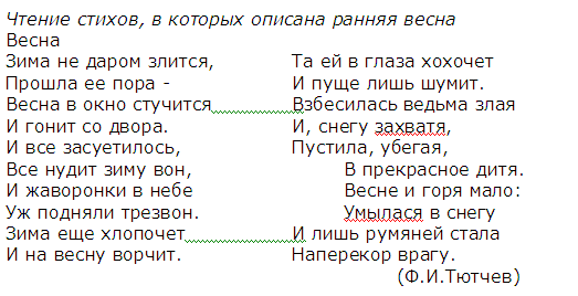 Стр. 66 Занятие. Экскурсия в весенний паркЦели: учить детей наблюдать изменения в живой и неживой природе, рассуждать, сравнивать; прививать интерес к природе, к жизни растений и животных; развивать речь детей. Ход занятий Вводная беседа - Назовите сегодняшней день недели, число и месяц. (март) - К какому времени года относится март? (К весне) - Сколько у весны братьев-месяцев? (Три) - Назовите их по порядку. (Март, апрель, май) Экскурсия - С чего начинается весна? (Солнышка стало пригревать сильнее, стало теплее) - Чем покрыта земля? (Снегом.) Произошли ли со снегом изменения по сравнению с зимой? (Да, снег стал темным, рыхлым, появились первые проталины, маленькие ручейки пробиваются из-под снега, между деревьями на снегу вода и т.д.) - Ветер дует теплый или холодный? (Еще холодный, сырой.) Изменились ли деревья? (Деревья стоят голые, но снега на них уже нет. На ветках тополя можно заметить набухающие почки.) - Что можно сказать о птицах? (Вернулись с юга грачи. Они громко кричат в парке, строят гнезда.) - Почему произошли в природе все эти изменения? (Солнышко днем стало сильнее греть землю, поэтому и стал таять снег, лед, побежали ручьи.) |