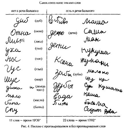 Стр. 173 Специальная работа над восстановлением письма целых предложений была начата к тому времени, когда больной уже умел правильно составлять устные фразы из 2—3 слов. Фразу больной строил правильно, но имелся экспрессивный аграмматизм. Трудность заключалась также и в удержании общего смысла фразы и ее лексического состава. С целью преодоления этих дефектов использовались сюжетные картинки, выносящие наружу смысловое содержание подлежащей написанию фразы, и всякого рода внешние опоры (карточки, палочки и т.д.), фиксирующие количественную сторону фразы. Сначала письмо каждой фразы занимало от 3 до 7 минут, включая проговаривание, использование орального образа, вычленение и фиксацию количества слов и т.д. Отдельные слова больной писал, используя лишь проговаривание. Письмо слов внутри фразы снова потребовало всех уже отпавших опор. Однако эти трудности были преодолены, и после 8—10 занятий, посвященных специально работе над письмом фраз, больной стал писать значительно быстрее и пользовался лишь проговариванием, в редких случаях прибегая к зрительному контролю. Однако навык письма фразы долгое время был нестойким, часто затруднения в написании фразы возникали вследствие неспособности проанализировать состав слова, что в свою очередь зависело от общего объема материала (количества слов), который больной должен был удерживать. В этих случаях больной снова возвращался к развернутому способу написания отдельных слов, вплоть до использования разрезной азбуки. Больному долго давали упражнения на дополнение предложений пропущенными словами (письменно), на составление предложений по данным ему словам, на самостоятельное письмо коротких (2 слова) фраз и т.д. Все это хорошо сказалось на окончательных результатах восстановления письма у больного. К концу восстановительного обучения больной хорошо писал не только отдельные предложения, но мог самостоятельно писать короткие изложения, письма. Восстановительное обучение проводилось 2 месяца по 5 занятий в неделю. |