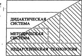 Стр. 3 Признак корректируемости предполагает возможность постоянной оперативной обратной связи, последовательно ориентированной на четко определенные цели. В этом смысле признаки корректируемости, диагностичного целеообразования и результативности тесно взаимосвязаны и дополняют друг друга. Педагогическая система Рис. 1. "Родовая иерархия" педагогической технологии Признак визуализации затрагиваетвопросы применения различной аудиовизуальной и электронно-вычислительной техники, а также конструирования и применения разнообразных дидактических материалов и оригинальных наглядных пособий. Может возникнуть вполне уместный вопрос: указанные признаки в той или иной мере присущи и таким категориям, как педагогическая, дидактическая и методическая системы. В чем разница между этими категориями и педагогической технологией? Основное отличие, на наш взгляд, состоит именно в мере выраженности каждого признака. Если в педагогической технологии эти признаки выражены наиболее сильно, то в педагогической, дидактической и методической системах они могут быть выражены слабо или же отсутствовать вовсе. Еще одно отличие заключается в том, что в педагогической технологии слабо представлен содержательный компонент, который присутствует в педагогической, дидактической и методической системах. Кроме того, между этими категориями существует "родовая иерархия", которую можно выразить диаграммой (рис. 1). В таком понимании педагогическая технология, или более уже -технология обучения является составной (процессуальной) частью дидактической или методической системы. Так, например, если методическая система направлена на решение следующих задач: 1) чему учить? 2) зачем учить? 3) как учить? То технология обучения, прежде всего, отвечает на третий вопрос с одним существенным дополнением: 4) как учить результативно? |