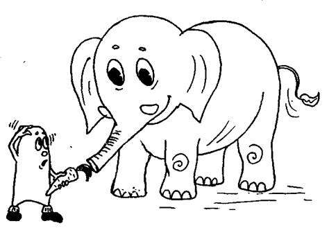 Нас встречает добрый слон. Длинный хобот тянет он.