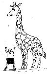 Широко улыбаться, растягивая губы. Жираф вытянул вверх шею. Очень он гордится ею.
