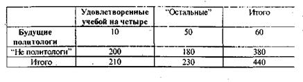 Стр. 165 Непосредственная ¾ опосредованная связь По таблице 3.4.1 коэффициент Юла показывает скорее на статистическую независимость, чем на статистическую зависимость, так как Q1 = 0,14. Социологу может показаться сей статистический факт странным, так как не согласуется с его содержательными гипотезами. Например, из предыдущих исследований могло быть известно, что студенты-политологи в основном удовлетворены учебой. Сомнения социолога будут вполне оправданы, ибо отсутствие непосредственной корреляционной связи еще не говорит об отсутствии связи вообще. Связь между двумя свойствами может быть опосредована третьим свойством. Маленькое значение коэффициента может быть обусловлено тем, что характер связи между «быть политологом» и «быть удовлетворенным учебой» различен, например, для юношей и девушек. Таблица 3.4.2 ¾ таблица сопряженности между свойствами «быть политологом» и «иметь четвертую степень удовлетворенности учебой» для девушек, а таблица 3.4.3 соответственно для юношей. Проверьте: сумма частот в ячейках вида (i,j) в этих двух таблицах равна частоте, соответствующей аналогичной ячейке таблицы 3.4.1. Таблица 3.4.2. Таблица сопряженности для девушек Таблица 3.4.3. Таблица сопряженности для юношей Подсчитаем коэффициент Юла для девушек (Qf) и для юношей (Qm). Первый будет равен примерно 0,9, а второй равен ¾ 0,7. Во-первых, нетрудно заметить, что в том и другом случае скорее наблюдается статистическая зависимость, чем независимость. Во-вторых, в самом деле характер связи для наших подвыборок действительно различен. Для девушек получен следующий результат: либо почти все будущие политологи удовлетворены, либо не политологи по удовлетворенности относятся к «остальным». Для юношей совершенно другой результат, а именно: либо почти все политологи по удовлетворенности «остальные», либо «не политологи» удовлетворены учебой. |