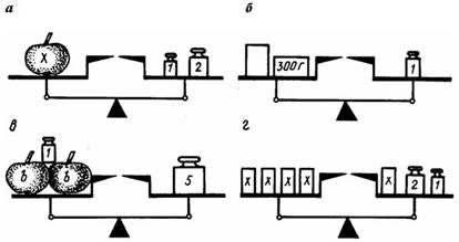 Стр. 26 1) выразите в килограммах 2 т 6 кг, 8000 г; в граммах – 1 кг 25 г; в центнерах – 6 т 9 ц, 8 000 кг; в тоннах – 570 ц; 2) сравните: 12 т и 1 200 кг; 3 200 г и 32 кг; 4 т 8 ц и 480 кг; 220 ц и 20 т 2 ц. Рычажные весы можно применять для иллюстрации понятия уравнения. Например: определить массу предметов, изображенных на рисунке. К рисункам можно составить такие уравнения: Методика знакомства с емкостьюЕще в детском саду, развивая количественные представления учащихся, учили детей измерять количество сыпучих и жидких веществ ложками, формочками, выясняли, в какую формочку песка входит меньше (больше). В 1 классе эта работа продолжается: учащиеся сравнивают емкость или вместимость различных сосудов. Вначале сравнение проводится на глаз (сосуды значительно отличаются по своей емкости). Например, предлагается сравнить, куда войдет воды больше: в банку или в кастрюлю. Перед учащимися ставятся пол-литровая банка и кастрюля емкостью 2-3 л, измеряется, сколько банок воды входит в кастрюлю. Тема "Литр" изучается в концентре "Десяток". Выявляя имеющийся у учащихся опыт, учитель предъявляет и стандартные банки вместимостью 1 л, 2 л, 3 л. Многие ребята знают вместимость этих банок, некоторые же не имеют о ней никакого представления. Учитель выясняет также, знают ли учащиеся, какими мерами измеряют объем молока, бензина, растительного масла, вообще жидкости. Затем он показывает детям литровую кружку, бутылку, банку, наливает воду в кружку, а затем поочередно переливает воду из нее в бутылку и банку. Так учащиеся подводятся к выводу, что в банку вмещается столько же воды, сколько в кружку, и столько же, сколько в бутылку, т.е. равное, одинаковое количество воды – 1 л. Чтобы этот вывод был понятен учащимся, необходимо, чтобы каждый ученик проделал эту несложную работу сам. Важно, чтобы дети запомнили это новое слово, научились правильно его произносить и записывать при числах. Учащиеся должны уметь отыскивать среди других сосудов сосуд емкостью 1 л. Далее учащиеся учатся измерять вместимость сосудов и отмеривать заданное количество литров. Они определяют, наполняя водой, емкость банок, небольших бидонов, кастрюль, ведер. Важно развивать глазомер учащихся, т. е. умение определять емкость сосудов на глаз. Учащиеся должны запомнить емкость стандартных, наиболее часто встречающихся в быту сосудов: банки емкостью 0,5 л, 1 л, 2 л, 3 л, 5 л, бидоны емкостью 1 л, 2 л, 3 л, 5 л, 10 л, 20 л, 40 л, ведра емкостью 8л, 10л, 12 л. |