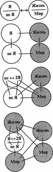 Стр. 173 Возникает удивительная реальность, которую весьма и весьма условно можно изобразить следующим образом в виде схемы. Назовем ее схемой проявления переживания полноты жизни в индивидуальной истории человека. Она нужна для того, чтобы попробовать еще раз аналитически прикоснуться к теме жизни и смерти. Проявление переживания полноты жизни в индивидуальной истории человека 1 состояние Действие 2 состояние Предпонятие 3 состояние Понятие 4 состояние Переживание понятия Диффузное состояние переживания взаимосвязи Дифференцированное состояние переживания взаимосвязи Диффузное состояние переживания своего воздействия Дифференцированное состояние переживания своего воздействия Я думаю, что выделенные этапы не имеют четкой возрастной границы (как и любое психическое качество человека) Можно говорить только о тенденции. Ее-то и попробую описать. На первом этапе индивидуальной истории переживание полноты жизни для человека (для ребенка) связано с диффузным, недифференцированным отношением к существующей взаимозависимости между его (Я-не-Я) присутствием и ситуацией его развития, где функционируют качества мира и идеи жизни, которые для ребенка воплощаются в его собственные состояния, вызванные действиями взрослых. Для сознания ребенка не дифференцируются качества его Я и его не-Я, так же как не дифференцируются качества идей и свойства вещей. Необходимость достигнуть полноты удовлетворения жизнью на длительное время задается ребенку ухаживающими за ним взрослыми. По мере развития мышления и чувств, через переживание их несоответствия как несоответствия себя самого самому же себе, ребенок получает психологические материалы (через эмоциональные состояния), которые позволяют ему дифференцировать существование во внешней реальности живого и неживого (в том числе идей жизни и свойств мира). В себе самом обнаруживается собственное Я и его несоответствие не-Я, то есть другому Я, принадлежащему кому-то персонально или людям вообще. Думаю, что это связано с формированием предпонятийного мышления, способствующего фиксации разных качеств как внешней реальности, так и реальности психической. Этот период связан с появлением у ребенка дифференцированных состояний переживания взаимозависимости между свойствами мира и качествами не-Я, идей жизни и качествами не-Я, возможное несоответствие, отсутствие взаимозависимости между качествами его Я и свойствами мира, между качествами его Я и идеями жизни, которые несут другие люди. Так создаются предпосылки для дифференцированного отношения к свойствам мира и к качествам идей жизни. |