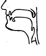 Рис. 34. Профиль артикуляции звука м Можно видеть положение губ, осязать вибрацию гортани, груди, щек и крыльев носа. Если получить звук м на основе слухо-зрительного восприятия не удается, необходимо перейти к другим приемам. Можно подходить к звуку м от гласного, лучше всего от а, произнося обратный слог ам или отдельный звук м. Ученик прикладывает одну ладонь к щеке учителя, а другую — к своей собственной (чтобы ощутить вибрацию). Хорошо дать почувствовать и вибрацию крыльев носа. Для этого следует приложить палец ученика к крылу носа. Звук н. Положение губ зависит от следующего за н гласного. Передний край языка в слогах на, но, ну, ны и в обратных слогах прижат к верхним резцам. При переходе к следующему звуку происходит не взрыв смычки, а размыкание; в обратных слогах размыкания может и не быть. В слогах не, ни смычка образуется прижатой к альвеолам передней частью спинки языка, благодаря чему звук смягчается (позиционное смягчение); кончик языка при этом находится либо наверху, за верхними резцами, либо внизу, за нижними резцами. Мягкое нёбо опущено, и воздух проходит через нос. Голосовые складки сомкнуты и вибрируют (рис. 35).