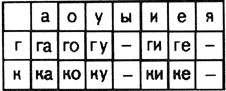 Стр. 68 Изучаются буквы, которыми обозначают выделенные звуки. Прочитываются слоги-слияния. Из букв разрезной азбуки учащиеся составляют слова Галя, Гена. В форме игры «День — ночь» прочитывают слова грибы — гриб — грибок — грибки — грибник. Рассказ читают по отдельным предложениям. Учитель проводит словарную работу: объясняет значение слов поганки (несъедобные грибы), боровики (белые грибы). Рассказ озаглавливается. Учащиеся выполняют словарно-логическое упражнение: называют съедобные и несъедобные грибы по рисункам, которые демонстрируются на наборном полотне. Дети читают отрывок стихотворения Е. Трутневой, которым заканчивается рассказ. Выясняется, о чем эти стихи, определяется интонация, с которой они должны быть прочитаны. Стихотворение выразительно читается еще раз. Урок по теме «Повторение и закрепление пройденного материала». По слоговой таблице, начерченной на доске, школьники читают слоги СГ и договаривают их до целых слов (гуси, голуби, галки и т. д.). Прочитывается рассказ «Подарки к празднику», уточняется, что подготовит каждый из ребят. Текст связывается с рисунками на с. 126. Составляется рассказ о детских играх и занятиях. Проводится игра «У кого?» (с. 127). Прочитав начало предложения в левом столбике, учащиеся подбирают по смыслу одно слово из правого столбика, например: У оленя — рога. Игра «Волшебные клеточки». Учитель чертит на доске таблицу.