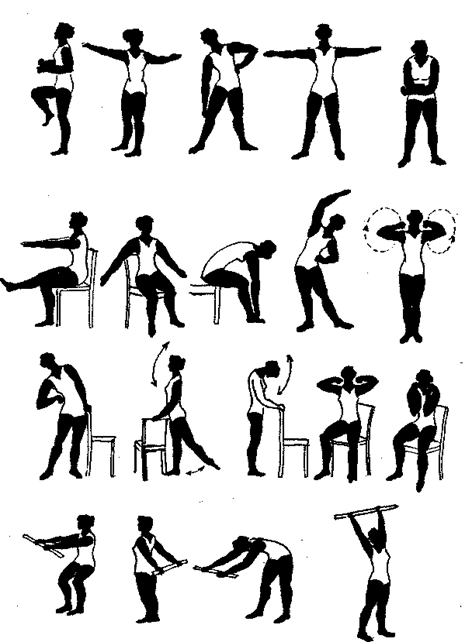 Стр. 190 Хронические неспецифические заболевания легких (ХНЗЛ)К этой группе заболеваний относятся хроническая пневмония и хронический бронхит. Под хронической пневмонией следует понимать повторные инфекционные процессы одной и той же локализации в паренхиме легких. Хроническая пневмония, будучи ограниченным (сегмент, доля) или распространенным воспалением бронхолегочной системы, клинически характеризуется кашлем с мокротой в течение многих месяцев (иногда многих лет), одышкой, периодическим усилением этих симптомов, сопровождающимся повышением температуры тела, болями в грудной клетке, не всегда укорочением легочного звука, но обычно усилением везикулярного дыхания, наличием сухих и разнокалиберных влажных хрипов, очагов крепитации. Изменения при физикальном исследовании усугубляются с развитием эмфиземы, бронэктазов, иногда хронического абсцесса. В комплексное лечение входят массаж, ЛГ, физиотерапия, лекарственная терапия и др. ЛГ назначается после нормализации температуры, СОЭ. Включают общеразвивающие и дыхательные упражнения, упражнения в откашливании мокроты в положении лежа, стоя и сидя. При наличии мокроты применяют ингаляции (содовые, эвкалипта и др.) и массаж воротниковой области, шеи и межреберных мышц с последующей активизацией дыхания (на выдохе больного производят сдавление грудной клетки), затем выполняется комплекс лечебной гимнастики (см. рис. 78), после проведенного комплекса ЛГ выполняется перкуссионный (или вибрационный) массаж. Массаж и ЛГ способствуют лучшему отхождению мокроты, укреплению дыхательной мускулатуры. Рис. 78. Примерный комплекс ЛГ при бронхите и пневмонии При амбулаторном лечении — ЛГ, ходьба в сочетании с бегом, лыжные прогулки, гребля, езда на велосипеде, игры и др. Санаторно-курортное лечение в Крыму: плавание, игры на берегу моря, ходьба и бег вдоль берега моря, сон на открытой веранде, диета и др. Хронический бронхит — диффузное, длительно протекающее необратимое поражение бронхиального дерева, в большинстве случаев характеризующееся гиперсекрецией и нарушением дренажной функции воздухоносных путей; нередко приводит к прогрессирующему нарушению бронхиальной проходимости и развитию «легочного сердца». |