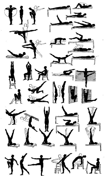 Стр. 213 ГастроптозГастроптоз — опущение желудка. Среди причин, обусловливающих это заболевание, выделяют такие, как ослабление мускулатуры брюшного пресса, значительное похудание, астеническое состояние, гиподинамия и т.д. Для больных с опущением желудка характерны жалобы на чувство тяжести, давления и ощущения полноты в эпигастральной области после еды, отрыжка воздухом, выпячивание нижней части живота, метеоризм и др. Комплексное лечение включает массаж, ЛГ, плавание, физиотерапию, диетотерапию. ЛГ (рис. 87) выполняется лежа на спине (с приподнятым тазом), на четвереньках, в коленно-локтевом положении. Включают общеразвивающие упражнения, дыхательные («диафрагмальное» дыхание), упражнения с резиновым амортизатором, гантелями, также показана гидрокинезотерапия (плавание с доской, в ластах, с лопаточками, игры в бассейне), криомассаж живота. В дальнейшем применяют вибромассаж спины, ягодичных мышц, нижних конечностей продолжительностью 10—15 мин. Курс 15—20 процедур. Рис. 87. Примерный комплекс ЛГ при гастроптозе |