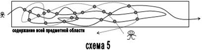 Стр. 68 Суть разновозрастной учебной группы в том и состоит, что позволяет каждому ученику с максимальной свободой (в разной последовательности, за разные промежутки времени, с разными людьми, в том числе и разными по возрасту) двигаться по всей программе предметной области (см. схему 5). Конечно, в результате реструктурирования какие-то рамки, барьеры на пути свободного освоения ребенком учебной программы останутся. Во-первых, нужно учитывать рамки внешние по отношению к ученику: некоторые зависимости внутри системы знаний и возможности самого учебного процесса. Во-вторых, внутренние – его готовность осваивать некоторый учебный материал, способности, особенности самого ребенка, которые проявляются в зоне его ближайшего развития. Структура учебных программ для организации обучения в разновозрастных учебных группах должна свести к минимуму количество барьеров на пути движения ребенка по всей предметной области школы. |