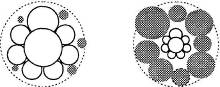 Стр. 216 От лжи себе и другим, в угоду кому-либо у человека атрофируется «внутреннее оценочное чувство», и он теряет истинные ценностные ориентации, превращаясь в «закомплексованного упрямца». У «закомплексованного упрямца» нет глубины суждения, говорит цитатами, если его поймали на противоречии, то реагирует болезненно и агрессивно. Предсказывает только плохое, ибо тяжело переживает неудачи. Он, как за соломинку, хватается за логику, но логика без руководящей идеи быстро заводит его в тупик. Его «объективность» и «практичность» доведены до демонстративного цинизма: «Любви нет, это просто выделение гормонов». Над такими обычно смеются, но «грешно смеяться над больными людьми». Для того, чтобы образно представить душевный мир дисгармоничной личности, воспользуемся пояснительной схемой на Рис. 3, которую условно назовем « Цветик - Семицветик». Рис. 3 «Ядро» душевного мира психически здоровой личности образует Духовность, воплощенная в одной из семи Святостей (Рис. 3, слева). Но, поскольку идеально здоровых личностей почти не существует, то в «Ядре» личности могут находиться и Лжеценности (они обозначены темными пятнышками). «Ядро» душевного мира дисгармоничной личности в основном образовано Лжецеиностями. Активность этих Лжеценностей субъективно переживается как Страсть, но в народе существует более точное слово — Лярва. Лярва — это нечто чужеродное, вросшее в душу, от которого и рад бы отказаться, но отказаться — это все равно, что удалить у себя орган или потерять, пусть ложное, но «Я». На схеме Лжеценности обозначены большими темными кругами. Они, как тучи, обволакивают истинное «Ядро» личности и своей черной активностью подавляют свет духовного Солнца, освещающего путь движения к Совершенству. Образно говоря, человек теряет свое духовное зрение и становится «слепым». Таким образом, если здоровая личность была гибкая, оптимистичная и открытая, то с утратой самооценки она превращается в дисгармоничную личность, становясь психически хрупкой, пессимистичной и закрытой |