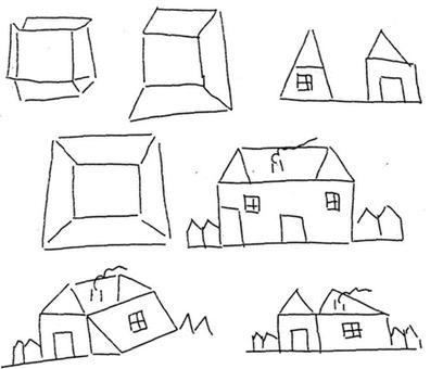 Рис. 36. Дефицит проекционных представлений по типу «распластывания» Характерно, что у здоровых детей только к 10 годам появляются устойчивые проекционные представления при копировании; что же касается самостоятельного рисунка, этот срок отодвигается до 12 лет, т.е. до того момента, когда полученные в процессе школьного обучения знания станут автоматизмами. На всем протяжении развития до этого момента дети обнаруживают широкий спектр проекционных ошибок, который никоим образом не может быть расценен как патологический знак. В дальнейшем в большинстве случаев эти феномены сопровождают стойкую несформированность пространственных представлений. И лишь в крайне редких случаях свидетельствуют о первичной мозговой недостаточности, во всяком случае всегда в едином симптомокомплексе с другими нарушениями. Необходимо подчеркнуть, что все описанные латеральные отличия дефицитарности пространственных представлений верны для праворуких испытуемых. При наличии фактора левшества выявленные феномены носят нелатерализованный, смешанный «право-левополушарный» характер. Пространственные представления являются одной из наиболее рано дебютирующих, но долго формирующихся в онтогенезе психических функций. Именно поэтому с особой силой встает вопрос об отнесении полученных при обследовании детей результатов к нарушениям или вариантам развития — типичного или отклоняющегося. Предлагаемая схема анализа позволяет: 1. оценить актуальный уровень развития отдельных аспектов пространственных представлений у ребенка и соотнести его с имеющимися нормативными показателями; 2. выявить удельный вес патологических факторов и симптомов недоразвития, несформированности в имеющемся синдроме; 3. в результате синдромного анализа высказать суждение о характере мозгового обеспечения пространственных представлений и на его основе о типе церебрального онтогенеза конкретного ребенка; |