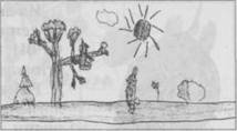 Стр. 31 Карта №7А. «Белочка и зайчик» ММД отражалась на поведении ребенка. Гипервозбудимость и необходимость сдерживать себя способствовали утомляемости ребенка. У мальчика наблюдалось постоянное чувство тревоги. На занятиях по логопедии Алеша постоянно спрашивал о маме или просился посмотреть, пришла ли она. Занятие творчеством явилось тем благотворным фактором, который снял это состояние. Ребенок очень любознательный и увлеченный. Это он был автором многих четверостиший и раньше других детей подбирал нужное рифмующееся слово. Ему не были необходимы логопедические занятия, но процесс творчества его захватил. Исчезла необходимость посмотреть, не пришла ли мама. Мальчик стал спокойным, уравновешенным. Он один выучил самое длинное стихотворение о том, как медведь сам себя напугал, и проиллюстрировал его. У ребенка очень низкое и монокулярное зрение, но он четко и последовательно отобразил все события, происходящее в стихотворении, не упустив ни одной детали. Карга №8 Никита Ш., 1 класс, 1994 г. рождения Диагноз. Врожденный нистагм, косоглазие, частичная атрофия зрительного нерва. Заключение логопеда. Системное расстройство речи по типу ОНР с нарушением звукопроизношения (ротацизм). Грубое нарушение фонематического восприятия слоговой структуры слова лексико-семантической стороны речи.