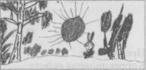 Стр. 32 Мальчик замкнут, отвечает неохотно, вяло, неуверенно. Быстро устает. На занятиях по развитию связной речи, когда дети подбирали рифмовки, был пассивен, т.к. имеет недостаточный запас слов и фонематическую несформированность. Но Никита первый захотел выучить стишок про божью коровку и нарисовал ее. В конце учебного года стал писать под диктовку односложные и двусложные слова, простые предложения. Справился посредственно с годовым диктантом. Карта №9 Маша К. 1 класс, 1994 г. рождения. Диагноз. Врожденная глаукома, дальнозоркость ел. степени. Зрение. ОД —0,03 OS — 0,4 Заключение психоневролога. Астенический синдром. Заключение логопеда. Неярко выраженное общее недоразвитие речи. Карта №9А. «Белочка и зайчик» У ребенка врожденная глаукома, а значит, постоянные головные боли. Астенический синдром. Девочка спокойная, старательная, но истощаема. На рисунке явно просматривается зрительное восприятие в единстве с развитием несенсорных психических функций: внимания (ребенок точно отображает летние краски природы и животных и зимние перемены в расцветках). Четко прослеживается логическое мышление ребенка в деталях рисунка. Маша помнит слова логопеда: «Белочку раскрасим простым карандашом. Она серенькая, а зайчика раскрашивать не будем, он беленький». У ребенка резкая разница в остроте зрения правого и левого глаза, но это не отражается на композиции, пространственном расположении предметов на рисунке. В речевом развитии ребенка не было особых проблем, но на состоянии здоровья занятие творчеством повлияло благотворно: девочка не стала скучать, исчезли головные боли. Она старалась запомнить все, что сочиняли на занятиях. Карта №9Б. «Белочка и зайчик» |