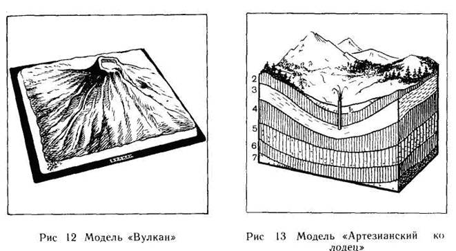Стр. 122 После того как учащиеся выполнят задание, можно предложить им рассказать о строении вулкана, опираясь на модель. 3. Сравнение двух моделей. При проверке домашнего задания по теме «Горы складчатые, глыбовые и складчато-глыбовые» демонстрируют модели «Сбросовые горы» и «Складчатые горы». Учащимся предлагается, пользуясь моделями, дать характеристику рельефа этих гор по следующим пунктам: что характерно для склонов, долин и водоразделов складчатых и сбросовых гор? Чем обусловлены различия в их рельефе? Ответ на эти вопросы требует от учащихся наблюдательности и значительной аналитической работы. Им необходимо выявить существенные признаки морфологии сбросовых и складчатых гор, получить по схематическому строению в разрезе сведения об их структуре, соотнести строение гор с крупными чертами их рельефа и т. д. 4. Решение творческой задачи. Учитель, демонстрируя модель «Овраг» при изучении темы «Образование и изменение равнин», ставит перед учащимися задание: изучите модель, расскажите о причинах образования, развития и вреде оврагов. Выполнение задания требует от учащихся значительных умственных усилий, связанных с наблюдением объекта, т. е. оврага, анализом данных наблюдений, формулированием выводов. При этом некоторые аспекты наблюдаемого явления, например зависимость уровня грунтовых вод от глубины оврага, ускользают от внимания учащихся, поэтому при выполнении задания почти всегда необходима помощь учителя. Таким образом, работа с этим видом моделей может осуществляться на разных уровнях познавательной деятельности и при правильной ее организации способствует не только формированию научных понятий, но и развитию учащихся. При изучении географии достаточно широко используют динамические модели, воспроизводящие природные процессы и явления. В основном это модели артезианских колодцев, образования складок и сбросов земной коры, циклона и антициклона и некоторые другие. Многие учителя готовят их в порядке самооборудования. В работе с демонстрационными моделями важную роль играют опыты и наблюдения. |