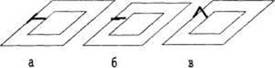 Рис 14 Приведу пример знакового опосредствования решения одной из задач. Задача "Мост"- расстояние между квадратным островом и берегом, также имеющим форму квадрата, равно "а". С помощью двух дощечек длиной ровно по "а" каждая надо перекинуть мост с берега на остров (рис. 14а). В этой задаче спровоцировано действие в области, задаваемой кратчайшим расстоянием между берегом и островом (рис. 146). Так и действовали испытуемые (ученики 3-9 классов) Ведь для достижения результата не хватает совсем "чуть-чуть" (рис 15а, б, в). Рис 15 После нескольких неудачных попыток решения экспериментатор менял формулировку задачи на следующую "Требуется самими дощечками как бы изменить форму водоема" Лишь несколько детей приняли задачу в такой формулировке и нашли верное решение. Для остальных экспериментатор вводит метафору разрезания водоема дощечками, говоря: ' Представьте себе, что дощечки как бы разрезают водоем, меняя его форму." Если дети не понимали, что это значит, экспериментатор приводил пример того, что он имеет в виду, изображая на рисунке подобное "разрезание" (рис. 16). После этого у всех детей появлялись попытки действовать исходя из понимания сказанного (рис. 17а, б, в). Те дети, которые принимали метафору, находили верное решение задачи (рис. 18). |
