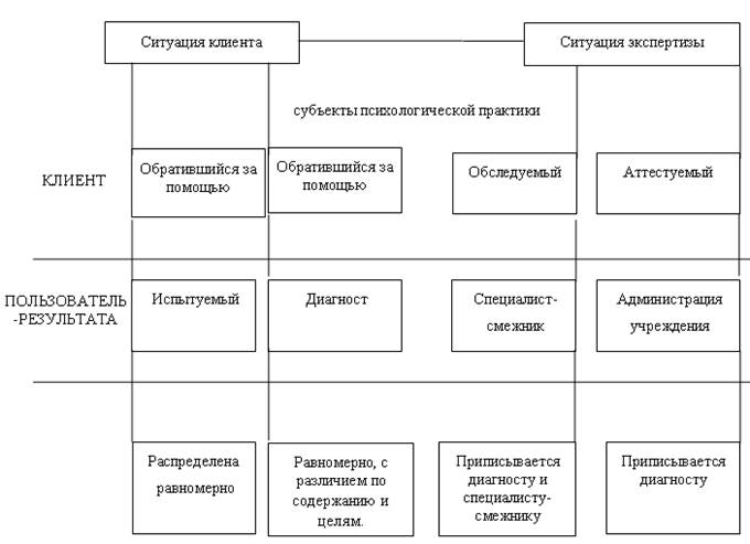 Стр. 6 Практика психодиагностики Таким образом, в ситуации клиента задачами диагностики является постановка диагноза и определение приемов и методов воздействия. В ситуации экспертизы на первый план выходит работа по согласованию целей диагностики и использование ее результатов, и лишь затем работа с испытуемым. Каким же образом строится деятельность психолога-диагноста и какие принципы ее определяют?(22) Прежде всего, определим субъекты и объекты диагностической практики: 1. Психолог-диагност. В качестве психолога выступает лицо, имеющее специальное психологическое образование, подтвержденное государственным дипломом и представляющее какую-либо частную или государственную организацию. 2. Заказчик. В качестве заказчика выступает официальное или частное лицо, обратившееся к психологу за консультацией психологического характера, ознакомленное с принципами и правилами психологической деятельности и согласное с ними. 3. Испытуемый. Лицо, согласившееся добровольно быть объектом психодиагностического исследования в каких-либо интересах является испытуемым. 4. Результат исследования. Теоретический, методический или экспериментальный материал, отображающий испытуемого с точки зрения запроса заказчика называется результатом. Психодиагностика на практике начинается с получения заказа от заказчика. Психолог при этом составляет во взаимосогласованной форме план исследования, договаривается о взаимных обязанностях и правах. Согласует с заказчиком использование результатов диагностики. Затем выбирается адекватная поставленным задачам теоретическая концепция (более подробно см. гл.3), методы и методики исследования, способы их обработки и интерпретации. После проработки методологических и методических аспектов предполагаемого исследования осуществляется непосредственно работа с испытуемым. Ее результаты обрабатываются и интерпретируются, согласуются с ранее полученными данными, формулируются согласно интересов заказчика. Отчет по исследованию в форме, согласованной заранее, передается заказчику, который и применяет к испытуемому рекомендации психолога. |