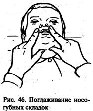 Стр. 93 § Укрепление лицевой мускулатуры осуществляется путем проведения следующих упражнений: 1) поглаживание лба от середины к вискам; 2) поглаживание щек от носа к ушам и от подбородка к углам (рис. 43); 3) разминание скуловой и щечной мышцы. Поместив указательные средние пальцы обеих рук в нижней части виска, производят спиралевидные движения по скуловой и щечной мышцам к подбородку (рис. 44, 45). После 4-5 легких движений сила движений нарастает. Они становятся надавливающими, но не болезненными, и не вызывают отрицательных реакций ребенка. Движения повторяют 8-10 раз по нескольку раз (2-3) в день. § Укрепление губной мускулатуры. С этой целью производят поглаживание, растирание, разминание губ: 1) от середины верхней губы к углам; 2) от середины нижней губы к углам; 3) поглаживание носогубных складок к крыльям носа (рис. 46); 4) пощипывание губ. Движения повторяют 8-10 раз ежедневно по 2-3 раза. Одним из приемов укрепляющего массажа является вибрация, которая производится ручным методом или при помощи вибратора. Передача тканям мелких, быстрых, ритмично чередующихся колебательных движений вызывает сильное сокращение мышц и придает им большую упругость. Вибрационный массаж губ проводится в соответствии с инструкцией, прилагаемой к виброприбору Используют насадки «шарик» и «ежик». Каждое движение повторяется 2-3 раза, не более двух минут, через день. § Укрепление язычной мускулатуры. При вялости языка проводят массаж с помощью деревянного шпателя: 1) продольные мышцы языка массируют путем поглаживания его от средней части к кончику; 2) вертикальные мышцы укрепляются с помощью ритмичного надавливания на язык; 3) на поперечные мышцы воздействуют посредством поглаживания языка из стороны в сторону. Движения 1, 2, 3 повторяют 4-6 раз. Легкие вибрирующие движения, передаваемые языку через шпатель в течение 5-10 секунд, способствуют активизации мышц языка. |