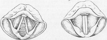 Стр. 9 Защитная функция гортани складывается из двух моментов. Первый заключается в том, что проходящий через гортань воздух несколько согревается, увлажняется и в известной мере нейтрализуется, например, при вдыхании вредных газообразных паров. Кроме того, вдыхаемый воздух очищается от мелких частиц, которые оседают на увлажненной слизистой оболочке. Второй момент характеризуется тем, что гортань играет большую роль в защите нижних дыхательных путей от случайного попадания (аспирации) в них инородных тел и частиц пищи. При каждом глотательном движении гортань поднимается кверху, так что ее верхний уровень оказывается выше пищевого комка, и он как бы обходит ее, проходя по бокам через грушевидные синусы, корень языка надавливает па надгортанник, который при этом опускается и закрывает вход в гортань, голосовые складки в этот момент плотно смыкаются. Рис 4. Гортань при вдохе. Рис. 5. Гортань при фона дни. Все эти движения гортани происходят рефлекторно в результате раздражения центра, заложенного в продолговатом мозгу-на дне IV желудочка. Защитными механизмами гортани служат три рефлексогенные зоны. Первая заложена в слизистой оболочке гортанной поверхности надгортанника, вторая — в голосовых складках и третья — в подскладочном пространстве. В ряде случаев при попадании инородных тел наступает раздражение рефлексогенных участков, что может привести к спазму голосовой щели или же появлению рефлекторного кашля. При этом с кашлем могут выбрасываться наружу посторонние примеси (предметы), вдыхаемые с воздухом. Голосообразовательная функция гортани в большинстве случаев является произвольным актом, реже — непроизвольным. Голосовая, или фонаторная, функция присуща не только человеку, но и всем животным, которые дышат легкими. У человека она имеет особое значение, так как связана с речевой функцией. Голос представляет собой совокупность звуков, образующихся при помощи голосового аппарата, и, как правило, является произвольным процессом, который подчинен человеческому сознанию. Реже голос может быть и рефлекторным, когда звук воспроизводится без осмысленного желания, например крик от неожиданной боли или испуга. |