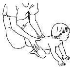 Стр. 89 Как учитьВо время обучения этому навыку необходимо, чтобы одежда малыша была удобной. Для того, чтобы не скользить, его руки (включая предплечья) и ноги должны быть голенькими (в крайнем случае, только руки и ступни). В противном случае, не достигнув успеха, он огорчится. Однако животик малыша во время упражнения должен беспрепятственно скользить по полу, поэтому корпус ребенка должен быть полностью закрыт облегающей спортивной майкой (никаких открытых участков). Существует несколько различных способов научить ребенка ползать на животе. Вполне возможно, вам и не придется прибегать к ним — если ваш малыш уже освоил все предшествующие навыки, он просто сам начнет ползать! Однако не забывайте о стимуле — игрушки должны находиться на расстоянии, чуть большем его вытянутой руки. Рис. 22. Управление движениями малыша от бедер Во время игровых занятий вы можете побудить малыша отталкиваться ногами, положив его на живот так, чтобы его ступни упирались в стену или в какой-нибудь предмет мебели. Ощущение давления на ступню вызовет у ребенка желание оттолкнуться от опоры и двигаться вперед. Продолжайте носить малыша так, как описывается в параграфе ОМ.А.25 и опускать на пол так, как рассказано в параграфе ОМ.А.39. Поднимайте его из позиции “сидя боком”. |