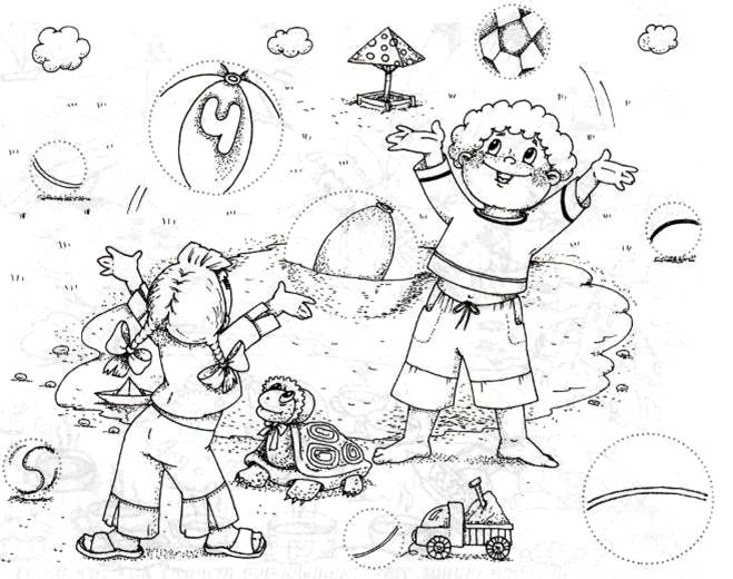 Стр. 3 МЯЧИХочешь, чтобы солнышко стало весёлым и лучистым? По прямым и волнистым линиям нарисуй лучи солнышка. Будь внимательным! Рисуй и проговаривай: «Луч, лучик». Отгадай загадку. Бьют его — не плачет, Прыгает и скачет. (Мяч) Нарисуй по точкам сначала маленькие мячики, потом большие мячи. Рисуй и проговаривай: «Ячяч-яч— мяч, чик-чик-чик-мячик». Раскрась маленькие мячики в разные цвета. Сколько их? Обведи и сосчитай большие мячи. Каких мячей больше? СТАЯ ЧАЕКПослушай и повтори чистоговорку. Подогрела чайка чайник. Пригласила восемь чаек. Прилетели все на чай. Закричали: «Чай-чай-чай». Выучи чистоговорку: «Чай-чай-чай. Чайка всех зовёт на чай» Обведи чаек по пунктиру. Сколько всего их прилетело на чай? Сосчитай: «Одна чайка, две чайки...». |