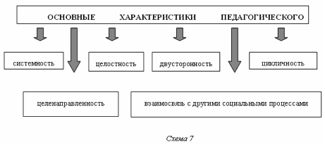 Стр. 48 Педагогический процесс организуется с ориентацией на определенные цели образования (социальный заказ общества) и для их реализации. Системообразующим компонентом педагогического процесса выступает цель, которая ему внутренне присуща. Цель содержится в структуре деятельности педагога и учащихся, в содержании и средствах педагогического процесса. Системность педагогического процесса связана с другой важной его характеристикой – целостностью (см. схему 7). В соответствии с современными взглядами ученых (И.П. Подласый, В.И. Смирнов, В.А. Сластенин и др.) целостность педагогического процесса реализуется: · в единстве обучения, воспитания и развития (единстве их целей, содержания, методов, форм, средств); · в единстве образования (воспитания) и самообразования (самовоспитания); · в единстве функций педагогического процесса; · в реализации в содержании образования всех компонентов опыта, накопленного человечеством (знаний, умений, навыков, опыта творческой деятельности, опыта эмоционально-ценностных отношений к окружающему миру); · в единстве, соподчиненности и вместе с тем определенной автономности процессов, этапов, актов, образующих целостный педагогический процесс; · в единстве деятельности образовательных учреждений, семьи, отдельных групп (коллективов) учащихся, общественных организаций, направленной на достижение общих целей образования; · организации разносторонней (целостной) деятельности воспитанников, оказывающей воздействие на все сферы личности: рациональную, эмоционально-волевую, практическую (поведенческую); · в единстве преподавания и воспитательной работы как целостной педагогической деятельности. |