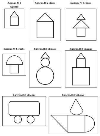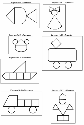 Стр. 269 ПРИЛОЖЕНИЯПриложение 1. Фигуры-эталоныПриложение 2. Чертежи с изображением предметов для конструирования из треугольниковПриложение 3. Макеты полянокПриложение 4. Карточки-письмаПриложение 5. Карточки для конструирования из плоскостного пластикового материалаПриложение 6. Карточки с числовыми фигурамиПриложение 7. Карточки с изображением совокупностей предметовПриложение 8. Карточки типа «домино»Приложение 9. Примеры подвижных задачПодвижная задача № 1 «Курица и два цыпленка» (до начала действия передвижения) Подвижная задача № 1 «Курица и два цыпленка» (после передвижения) Подвижная задача № 2 «Две лодочки» (до начала действия передвижения) Подвижная задача № 2 «Две лодочки» (после передвижения) Подвижная задача № 3 «Курица и три яйца» (до начала действия передвижения) Подвижная задача № 3 «Курица и три яйца» (после передвижения) Подвижная задача № 4 «Яблоня с тремя яблоками» (до начала действия передвижения) Подвижная задача № 4 «Яблоня с тремя яблоками» (после передвижения) Подвижная задача № 5 «Птицы в небе» (до начала действия передвижения) Подвижная задача № 5 «Птицы в небе» (после передвижения) Подвижная задача № 6 «Три лягушки» (до начала действия передвижения) Подвижная задача № 6 «Три лягушки» (после передвижения) Подвижная задача № 7 «Елка с четырьмя игрушками» (до начала действия передвижения) Подвижная задача № 7 «Елка с четырьмя игрушками» (после передвижения) |