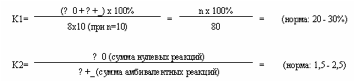 Стр. 81 Коэффициент напряженности.Кроме классов, для общей оценки эмоциональной напряженности можно воспользоваться коэффициентом К1. Другой коэффициент напряженности тенденций - К2 - это та величина, которая показывает, во сколько раз чаще обследуемое лицо дает на портретные стимулы нулевую реакцию по сравнению с амбивалентной при многократных обследованиях. Нулевые реакции обозначают наружные, а амбивалентные - внутренние факторы симптомов. С помощью коэффициента К2 можно выразить соотношение между наружными и внутренними симптомами. Из этой величины можно сделать существенные заключения о поведении обследуемого. Если К2 меньше единицы, то поведение индивида отличается сдержанностью, заторможенностью, как это бывает при неврозах навязчивости, у шизоидных психопатов и при шизофрении. Если К2=1 (или 2, или 3) то поведение является нормальным. Если К2 от 5 до 10 и более, то поведение обследуемого лица взволнованное, возбужденное, с проявлениями раздражительности, безудержное, близкое к ажитации. Так бывает при истеро-эпи-лептических расстройствах, у циклоидных психопатов, при маниакально-депрессивном психозе. Анализируй каждый отдельный случай, необходимо понять, является ли заторможенность следствием внутреннего подавления, а не давления внешних сил Реакции hy- , кили +_ говорят о заторможенности, даже если К2 больше 3 ( в этом случае речь может идти о беспокойстве, возникшем в результате расторможенности) И, наоборот, при низком К2 индивид может быть неспокойным в случае, если он обнаружит такие реакции, как С 0 0, или hy0, k0. Словом, никогда нельзя судить о состоянии и поведении индивида на основании одного показателя. |